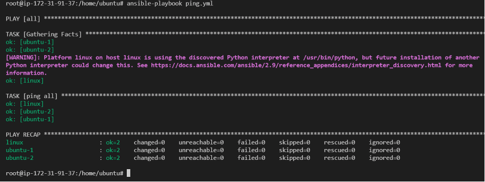 ansible-playbook ping.yml