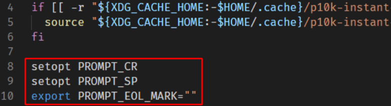 setopt PROMPT_CR setopt PROMPT_SP export PROMPT_EOL_MARK=""